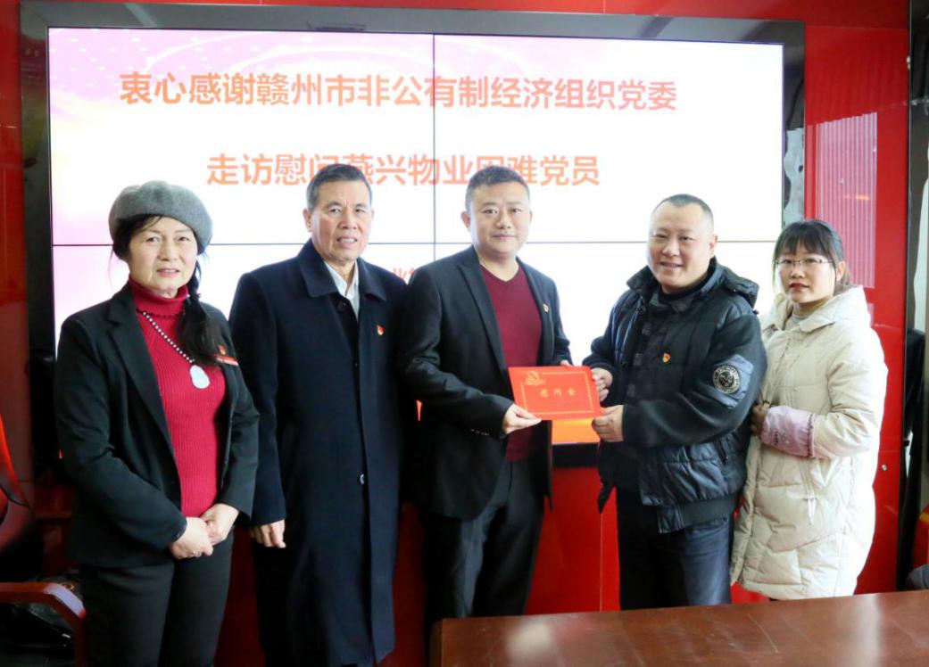 2020年1月19日上午,贛州市非公黨委黨組成員、市工商聯(lián)秘書長(zhǎng)葉昊一行,帶著上級(jí)黨組織和市非公黨委的關(guān)懷,來(lái)到江西燕興物業(yè)管理集團(tuán)黨委,走訪慰問(wèn)生活困難的基層黨務(wù)工作者童章杰同志,向他送上新年的祝福及... 2020-01-22